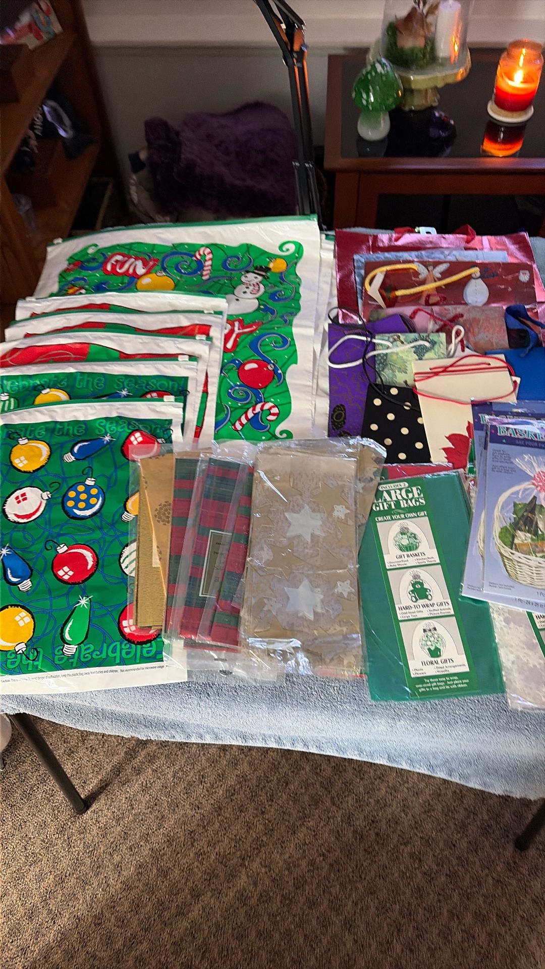 there are all sizes of the zip bags. There are basket bags. There are paper bags. There’s tissue and there’s candy bags as well or cookies and wine bags too. This price is for all.