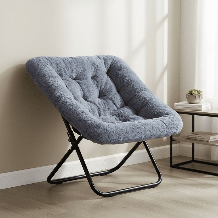 Accent Chair Sets, Comfy Folding Living room Saucer Chair with Faux Fur Padded for Lounge Reading, Metal X-Large, Gray,