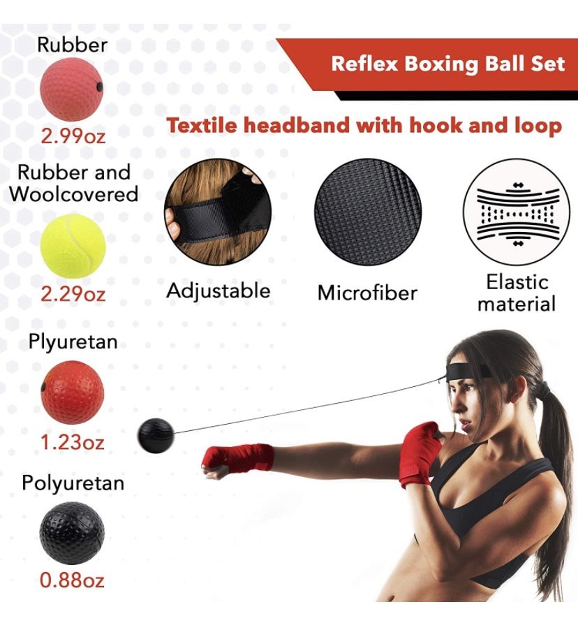 NEW Spare Boxing Reflex Ball with Headband Set - Adjustable Boxing Headband Ball Trainer-4Pcs Punching Ball Progressive Difficulty Levels-Boxing Train
