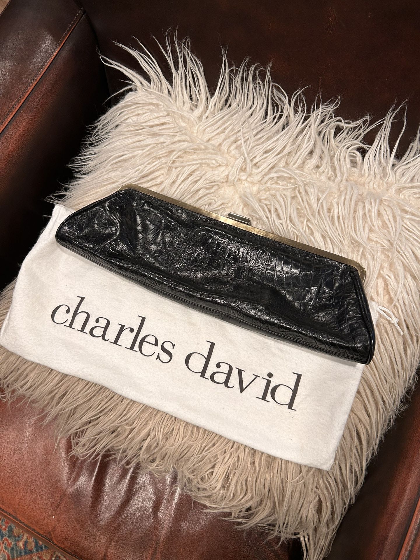Charles David Long black Leather Clutch