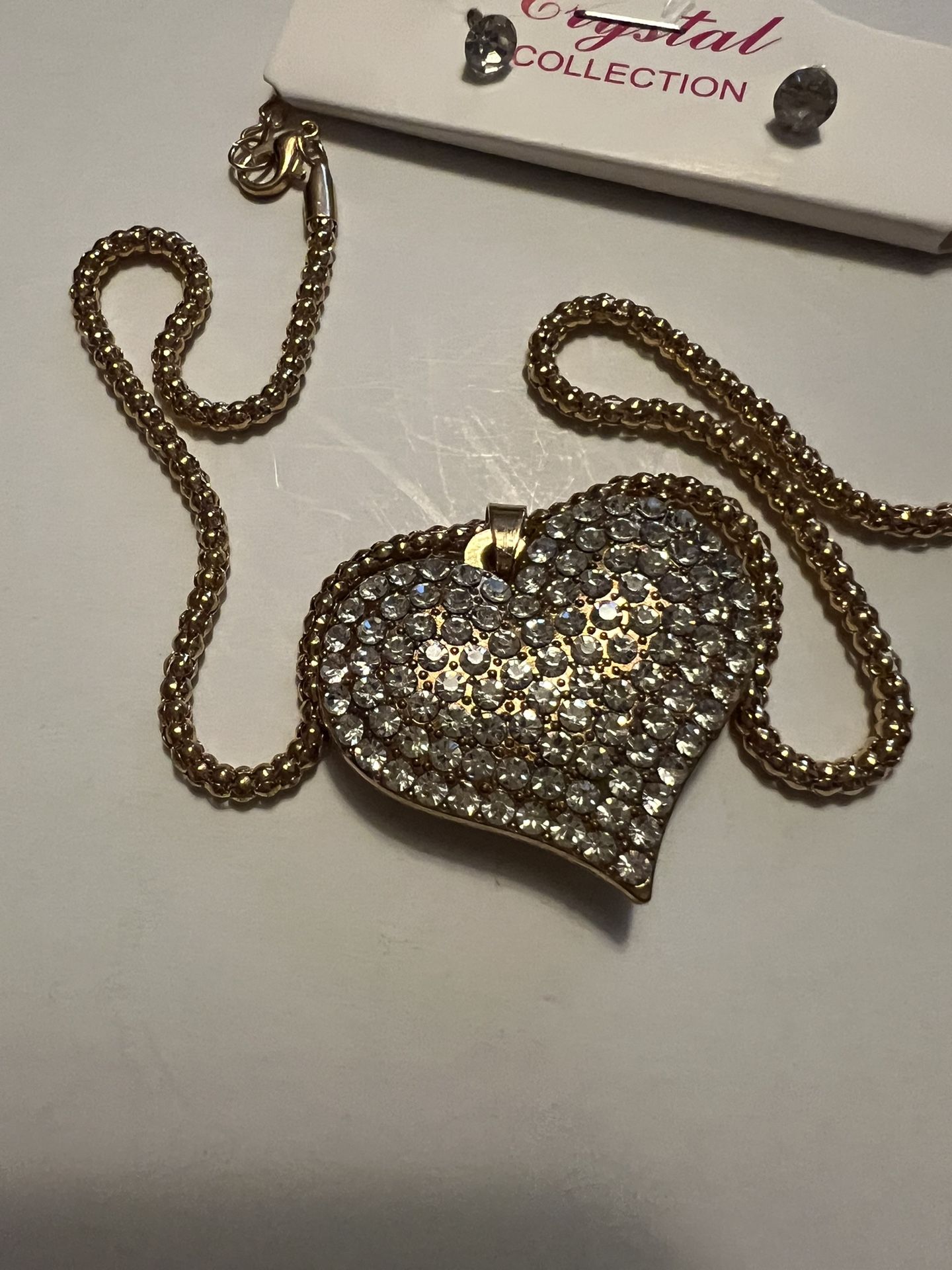 Cosmetic jewelry, long gold heart necklaces with diamonds. Adjustable.. must pick up.