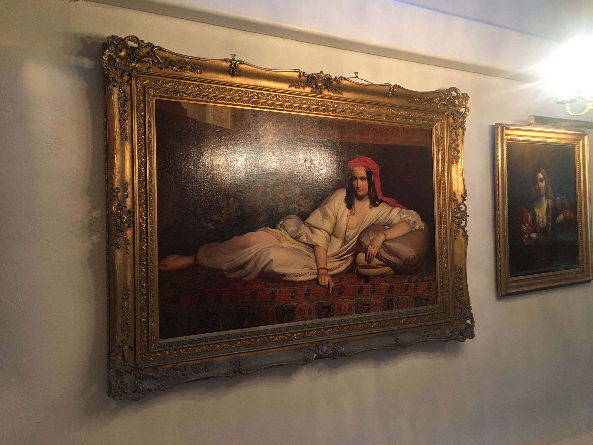 Palace size antique painting of a woman. Oil on canvas. Beautiful original gilt frame. Approximately 5 feet by 8 feet. Ex Sotheby’s. Have all paperwork for it. Extremely rare. Price firm. Pick up in Carlsbad.