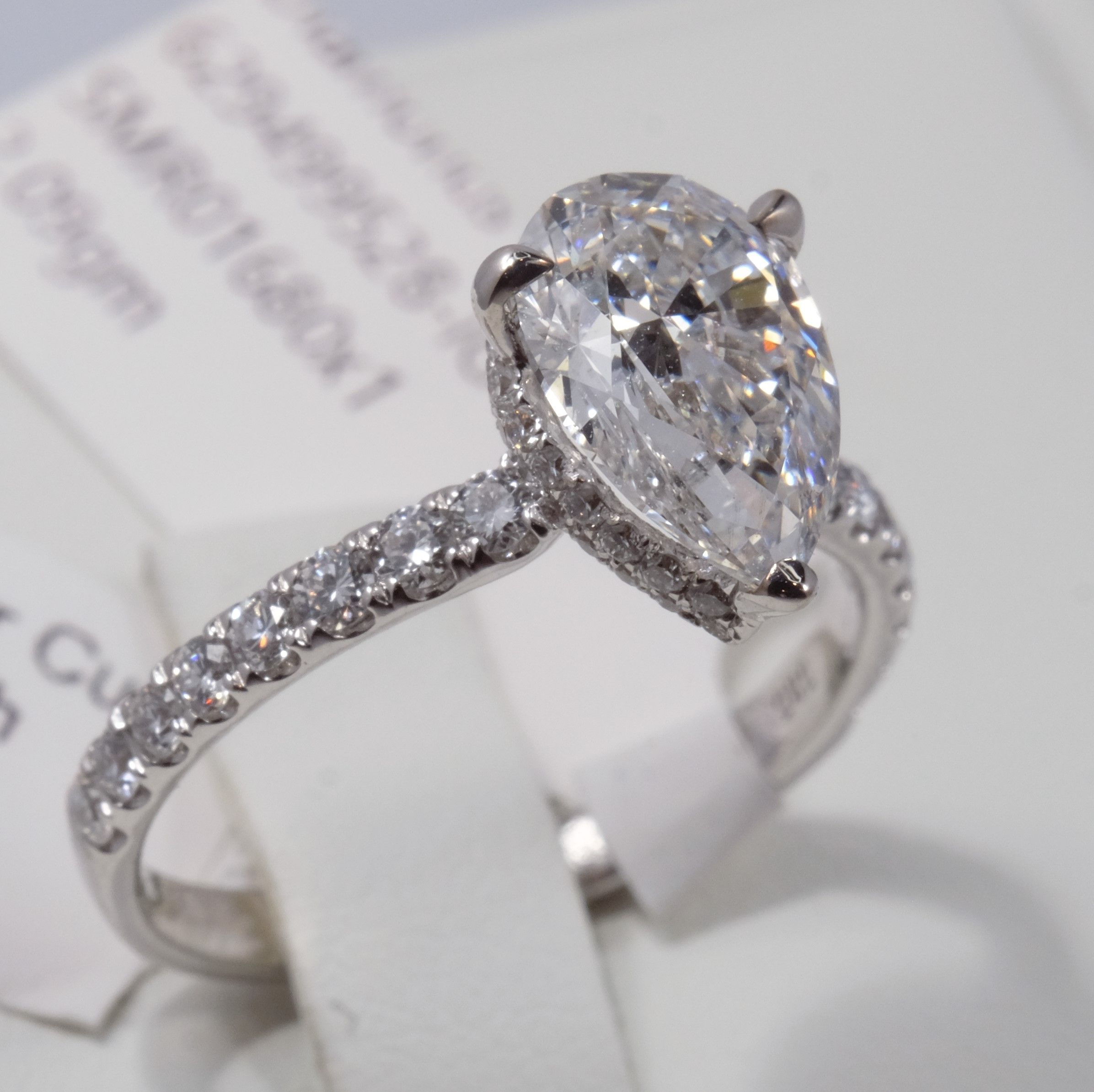 New Pear Cut Diamond 2.61ct tw. Ring with Hidden Halo Pave Setting . IGI-Certified lab-grown