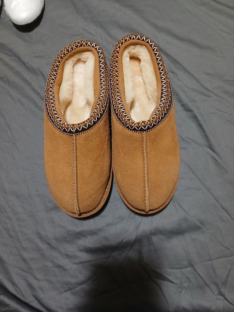 Really comfortable brown slippers. Brand new. Found them in my closet in the original packaging. Never been worn. Bought on Amazon. The same listing has it for sell at 39.99.