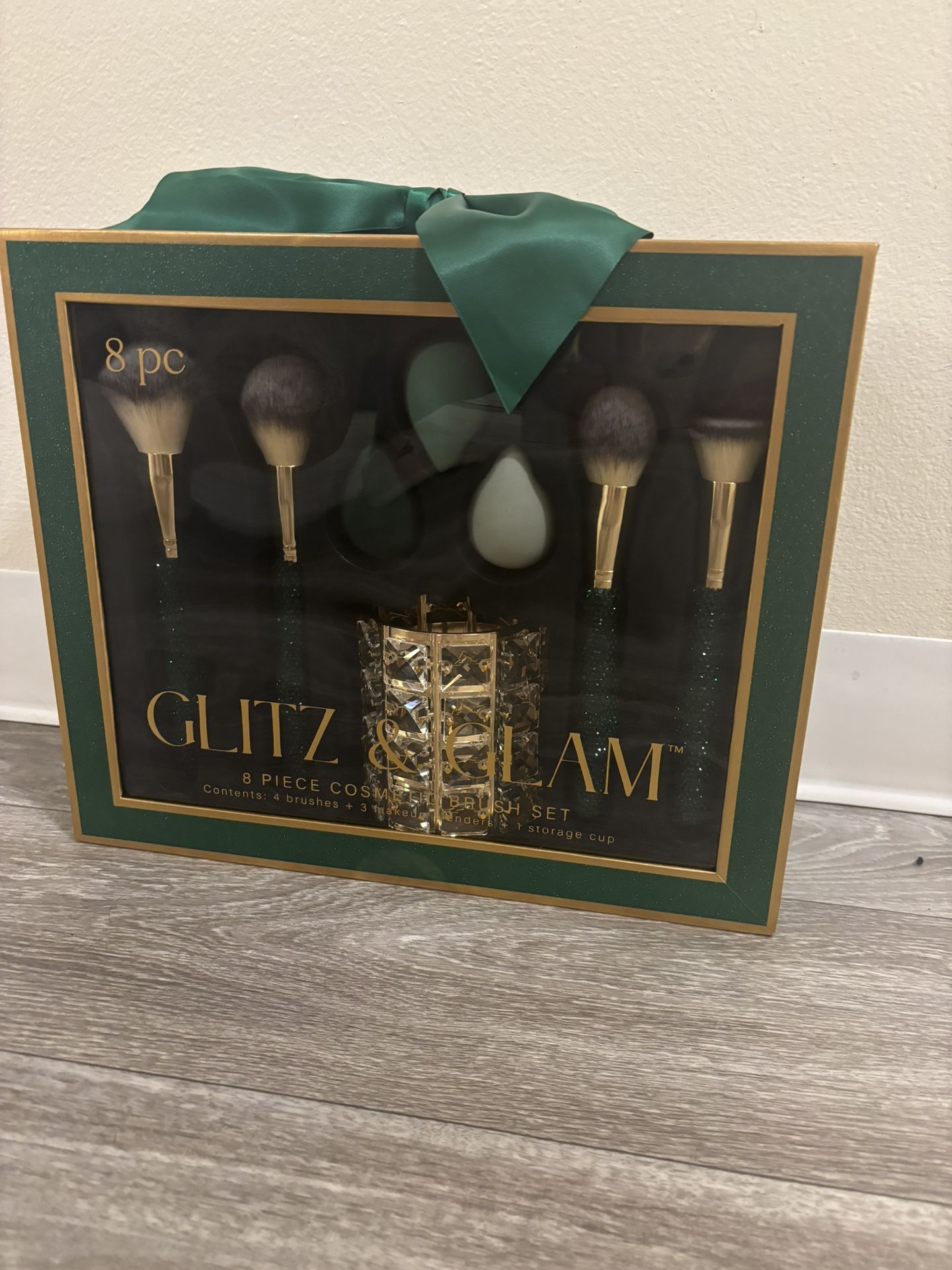 8 piece glitz and glam set in emerald green Brushes are jumbo size