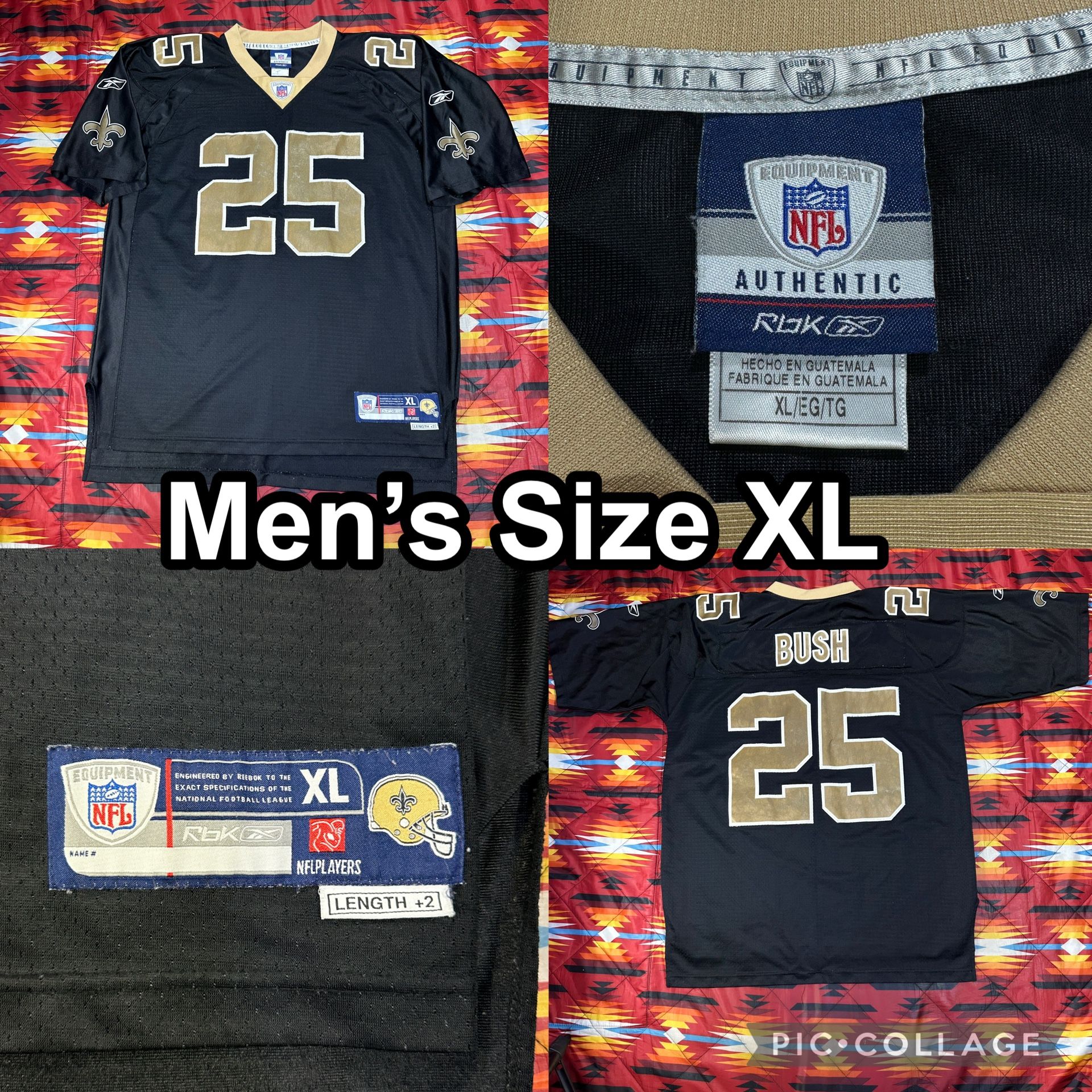 Reebok NFL Authentic Mens Size XL New Orleans Saints Reggie Bush Sewn Jersey
