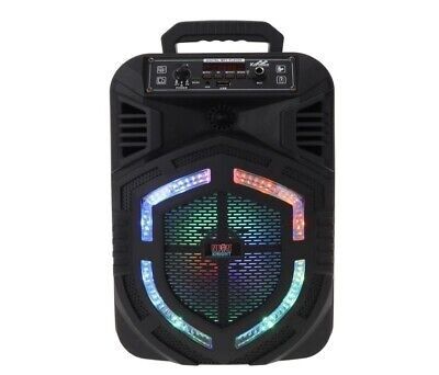 Bluetooth speaker 8 inch has Bluetooth, fm Radio, micro sd reader and usb. Comes with charging cable can also be used for karaoke or loud speaker can plug In mic to it