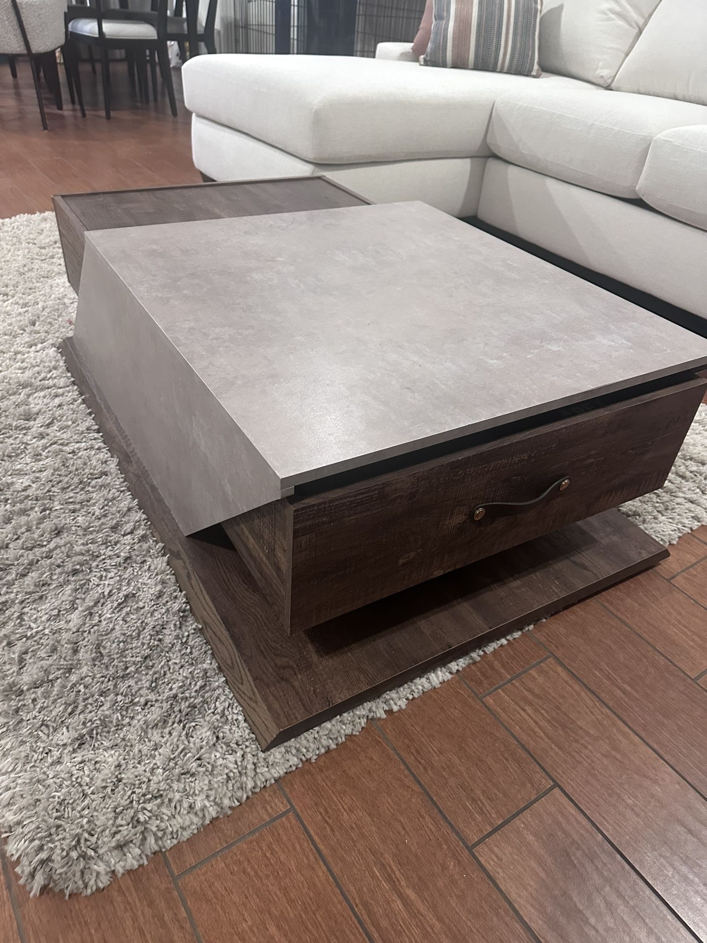If post it’s up, it’s still available. Will only respond to pick up inquiry or reasonable offers. Modern coffee table with dual drawer sides. One side opens up and the other is a drawer. Dimensions included in pics. Cash or Venmo only, pick up only, need two people to move.