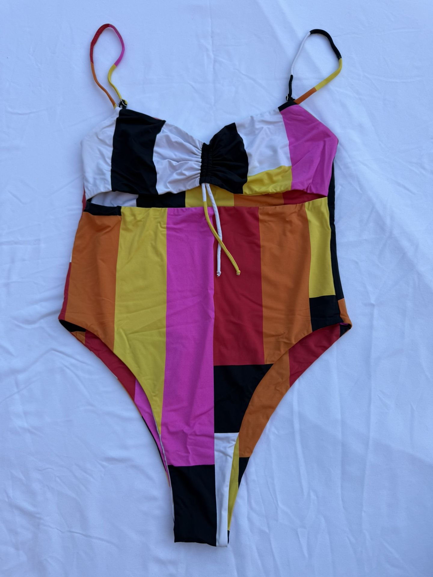 San Lorenzo Bikinis Colorful Blocked Stripe Bikini One Piece With Cut-Out Front Brand New/Never Worn Size M