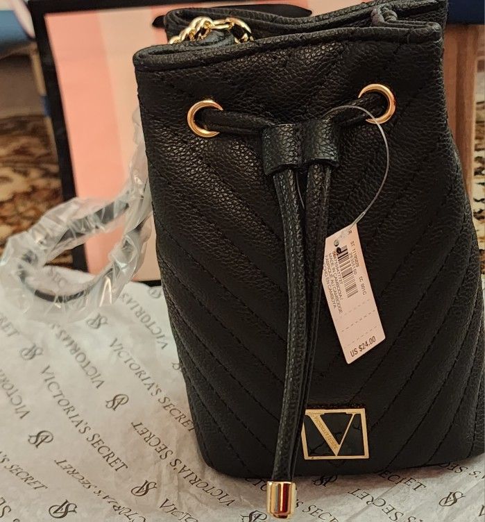 Victoria's Secret Black V Quilted Small Drawstring Wristlet