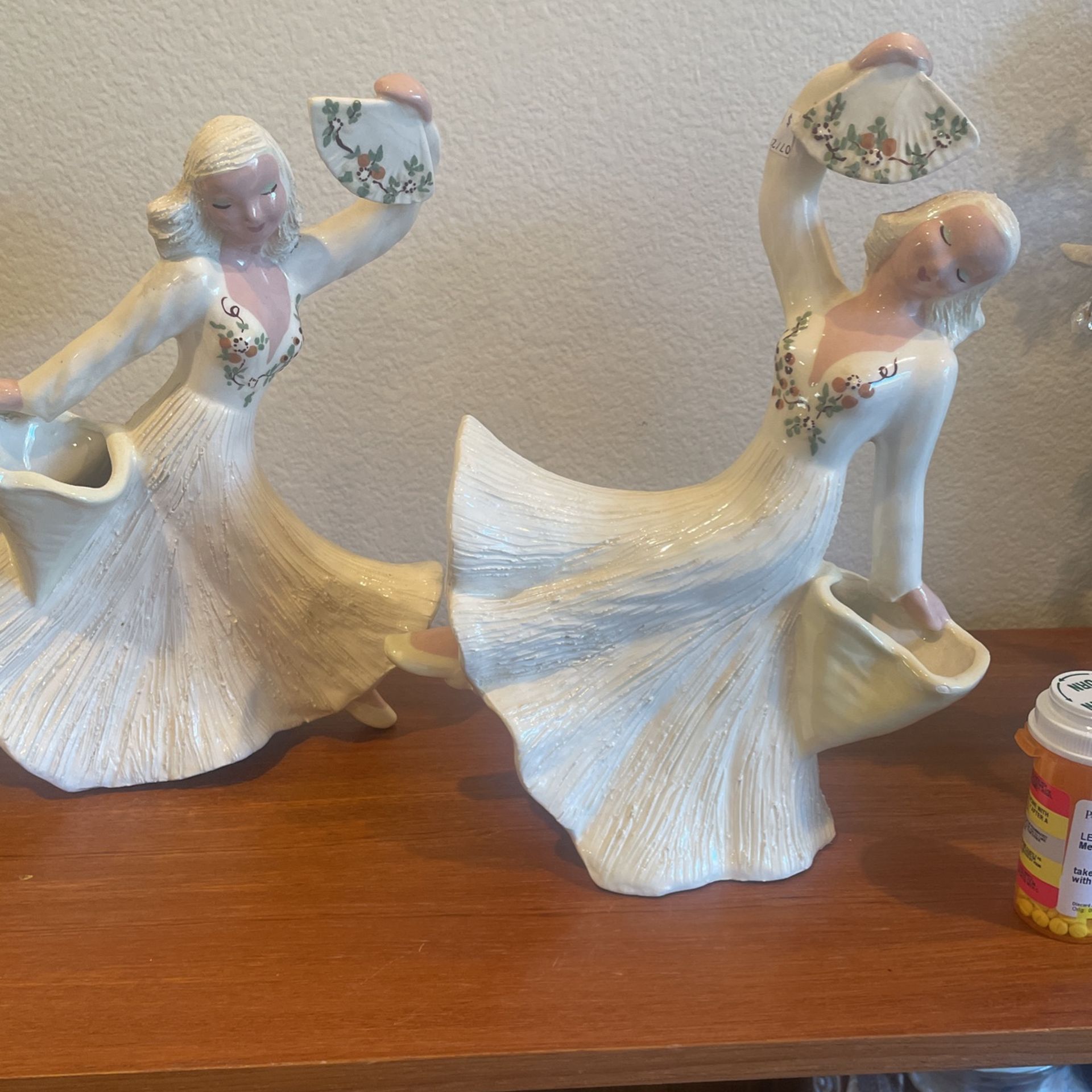 Original vintage Hedi schoop ceramics 1940s signed mint condition dancing lady vase hollywood calf. Set of two