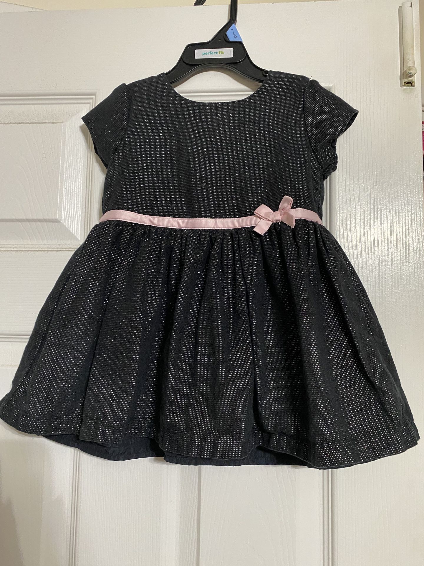 Used just once. It says 2 pieces but I only have the dress, it did not come with the 2 pieces when she received it as a gift. It is black color with silver sparkles and pink bow.