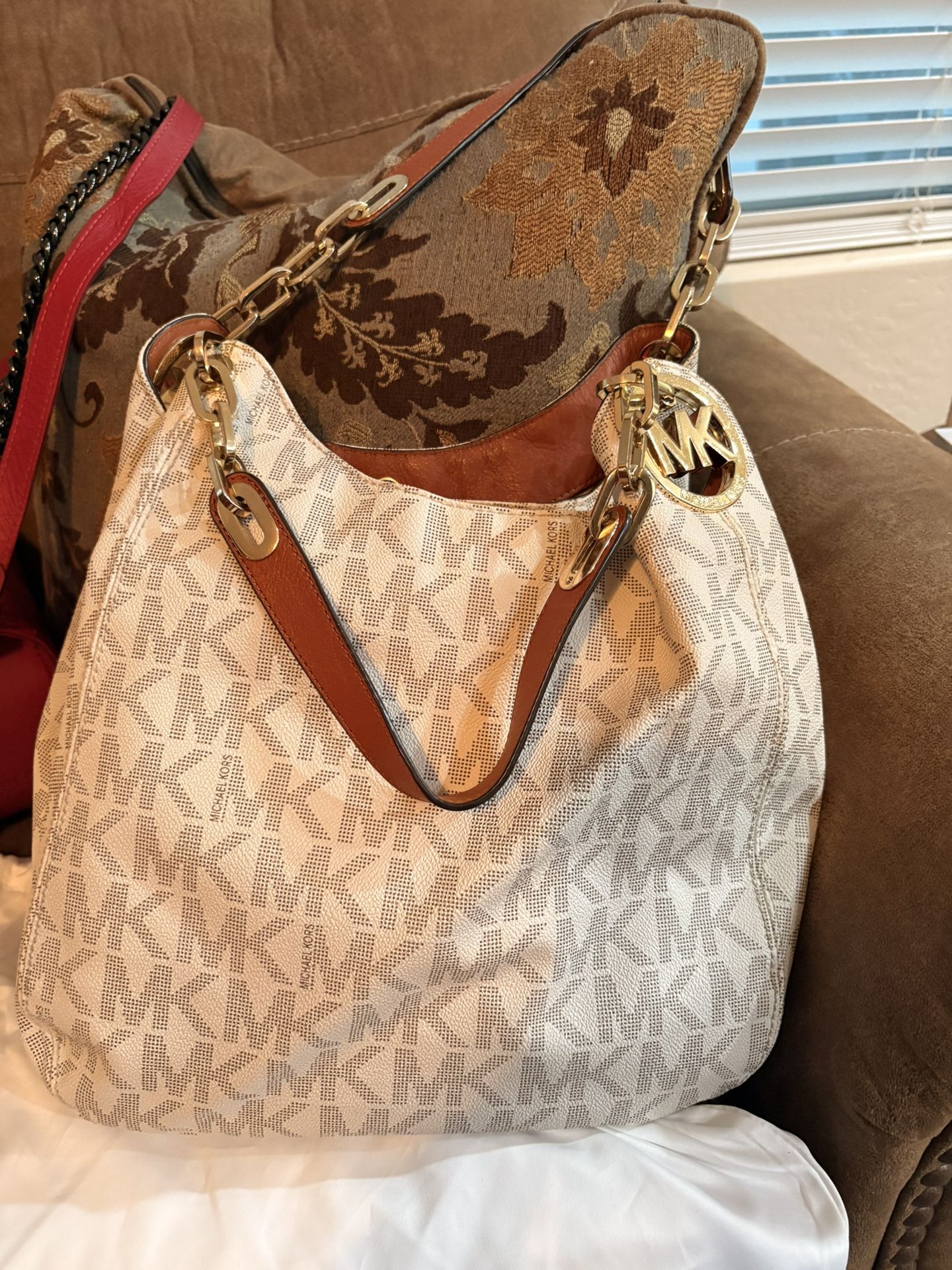 Selling my purses hardly used just have too many First cream Michael Khors (authentic) like new 100$ Blue Michael Khors similar to cream one but includes wallet 120$ Coach colored one 60$ (authentic) Michael Khors metallic (authentic) 100$ did not use not once. Victoria Secret chain bag 30$ Red vegan bag also new 10$ Please don’t low ball me these bags are practically brand new. Very well kept. I’m sure with the holidays any girl would love to receive.