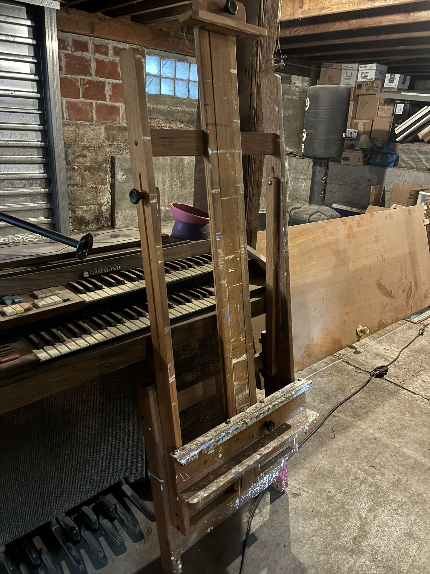 Easel, acrylic paints, colored pencils, and pastels. Varying degrees of wear and amounts, some paints never opened! Selling as a set.