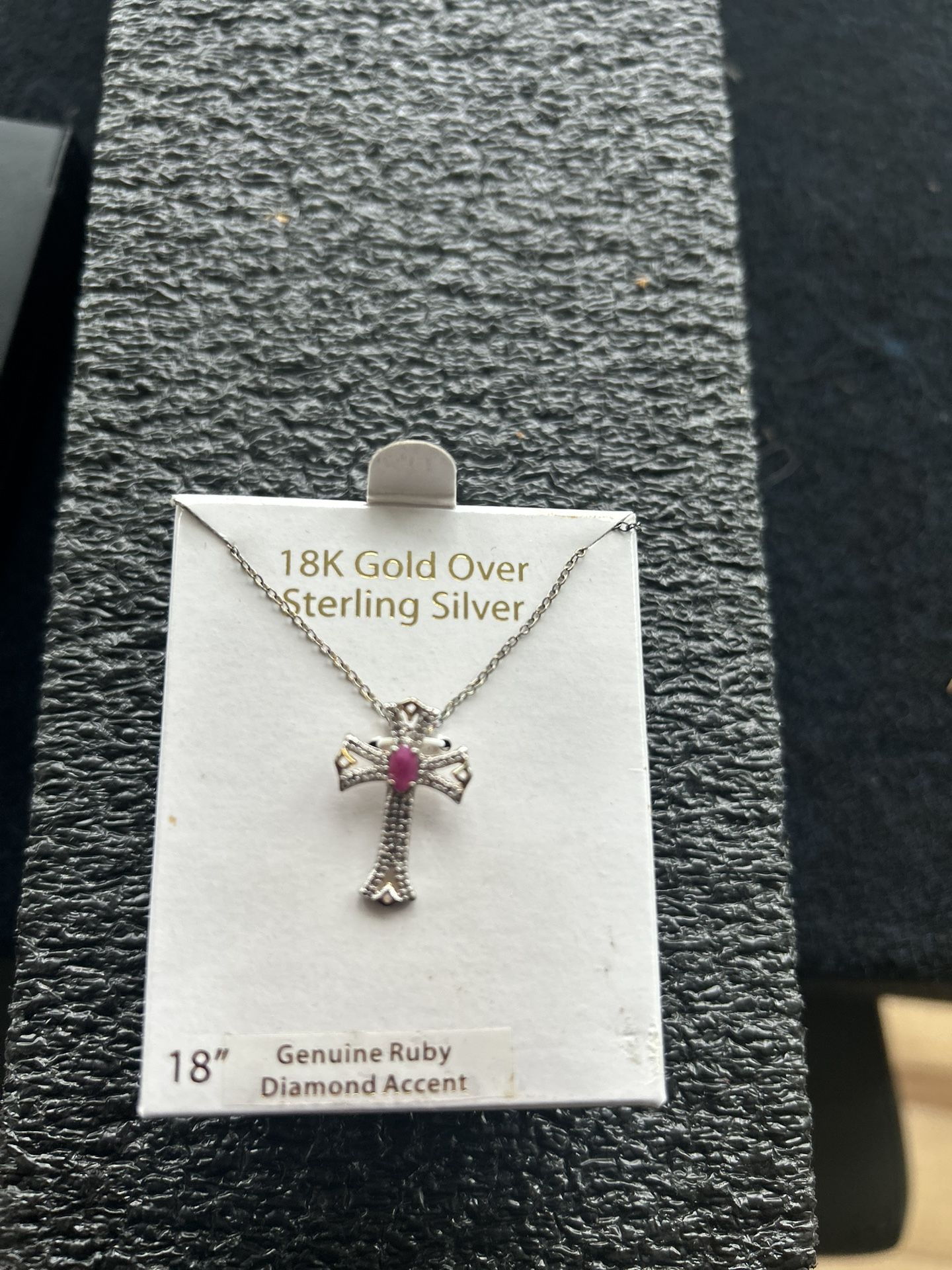Sterling Silver Diamond Ruby Cross (new Never Worn)