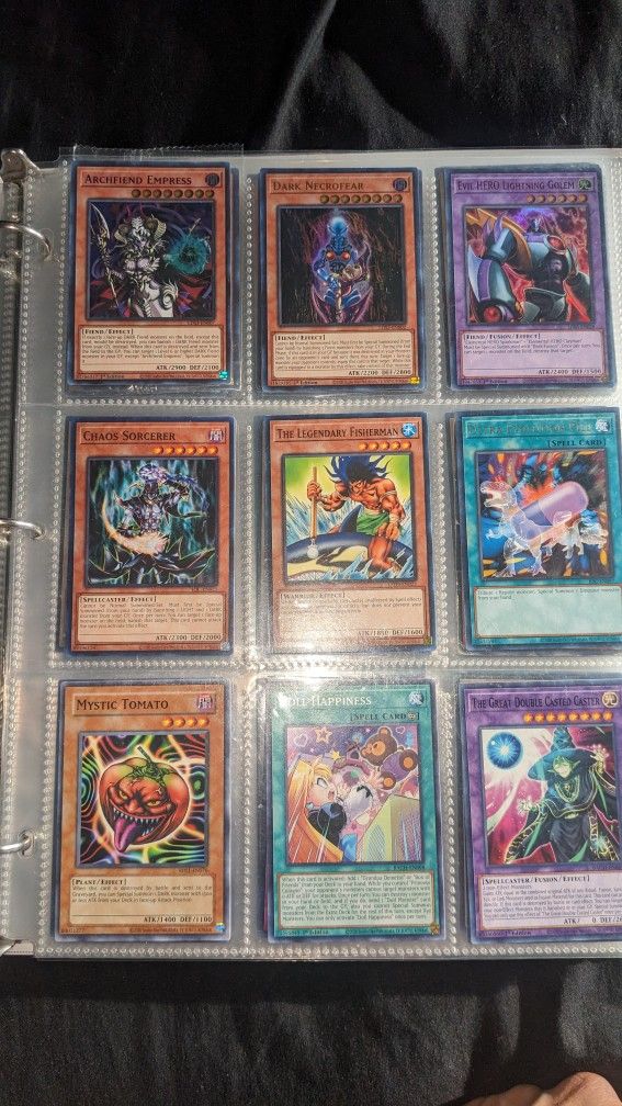 My cousin gave me some of his Yu-Gi-Oh cards of his that he doesn't use anymore and I've played Yu-Gi-Oh myself but I figured why not sell more to get more new ones and there's 18 sleeve up and the rest is just a regular deck but with iconic cards from the show!!!