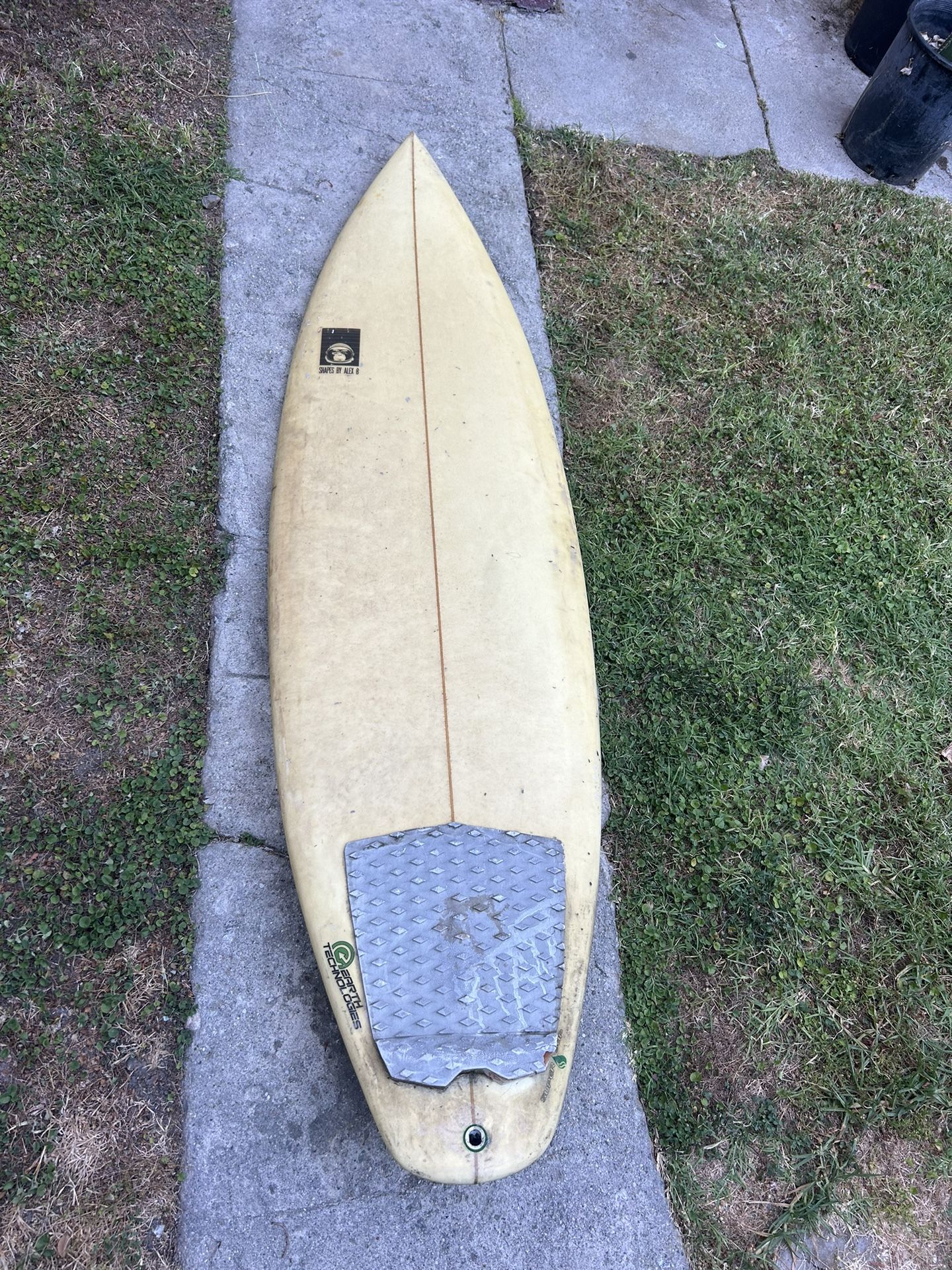 Dimensions: 5'11" x 19 1/4" x 2 1/4" Includes fins and I can include a leash too. The surfboard has a few dings from storage and hasn’t been used in the water since. Make sure to apply wax before use.