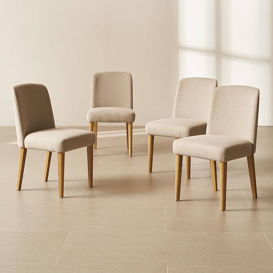 mopio Logan Upholstered Beige Parson Dining Chair Set of 4, Modern Farmhouse Solid Light Oak Wood with Ergonomic Curved Back Rest for Dining Room and