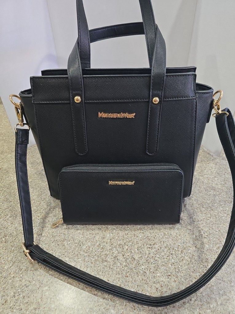 Black Montana brand purse and wallet. Purse has removable strap. I bought this as a 3 piece set and only use the biggest bag. These items have never been used and are still brand new. Buyer must pick up, closest cross streets are Williams Field and Gilbert.
