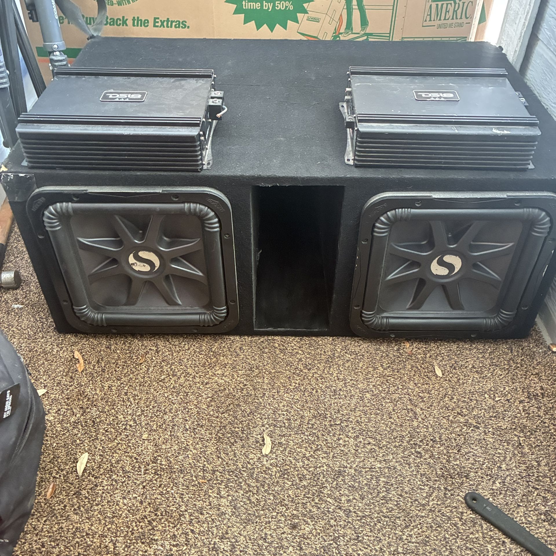 12” L7 Speakers In A Custom SL Box Competition System With 2 DS 18 Amplefiers 5K Watts each for bass $500 cash or trade for a E-bike