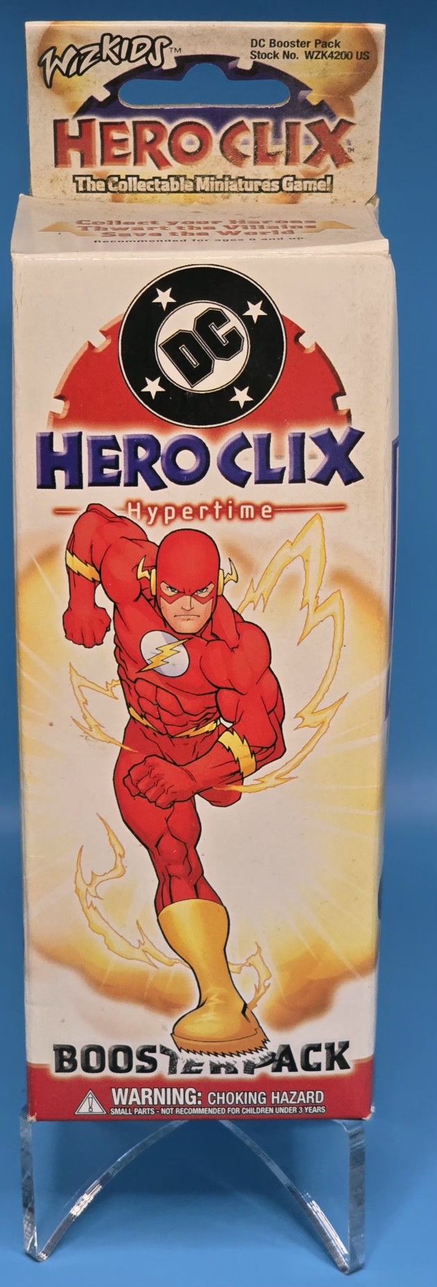 2003 DC HEROCLIX WIZKIDS HYPERTIME FEATURING THE FLASH BOOSTER PACK IN NEW, UNOPENED CONDITION. THE BOX DOESN'T SHOW ANY SIGNS OF WEAR.