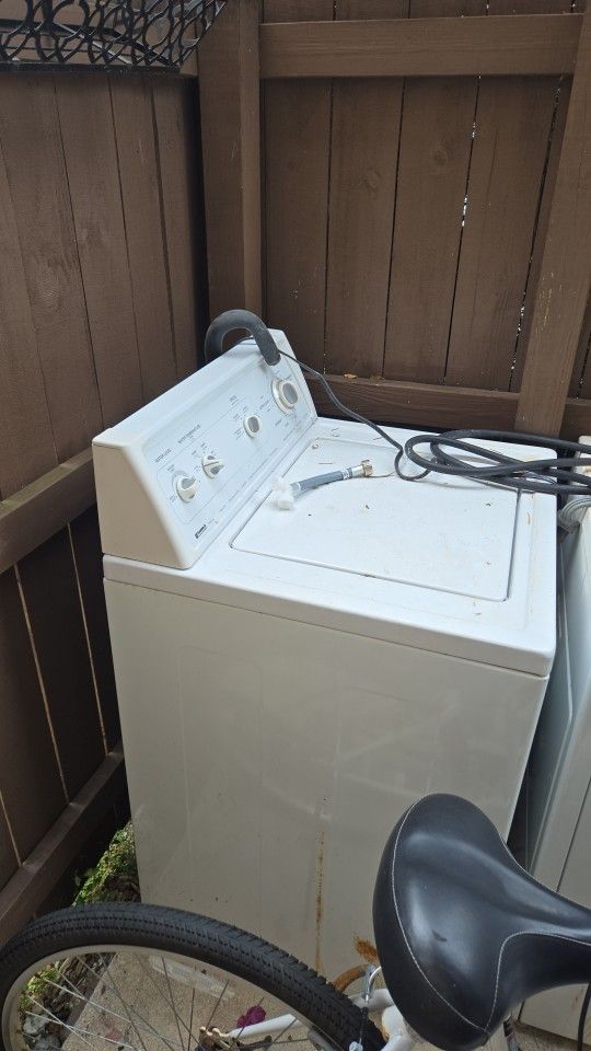 Lavadora trabaja bien y secadora tambien. Unico es que esta oxidada por afuera por que le callo agua