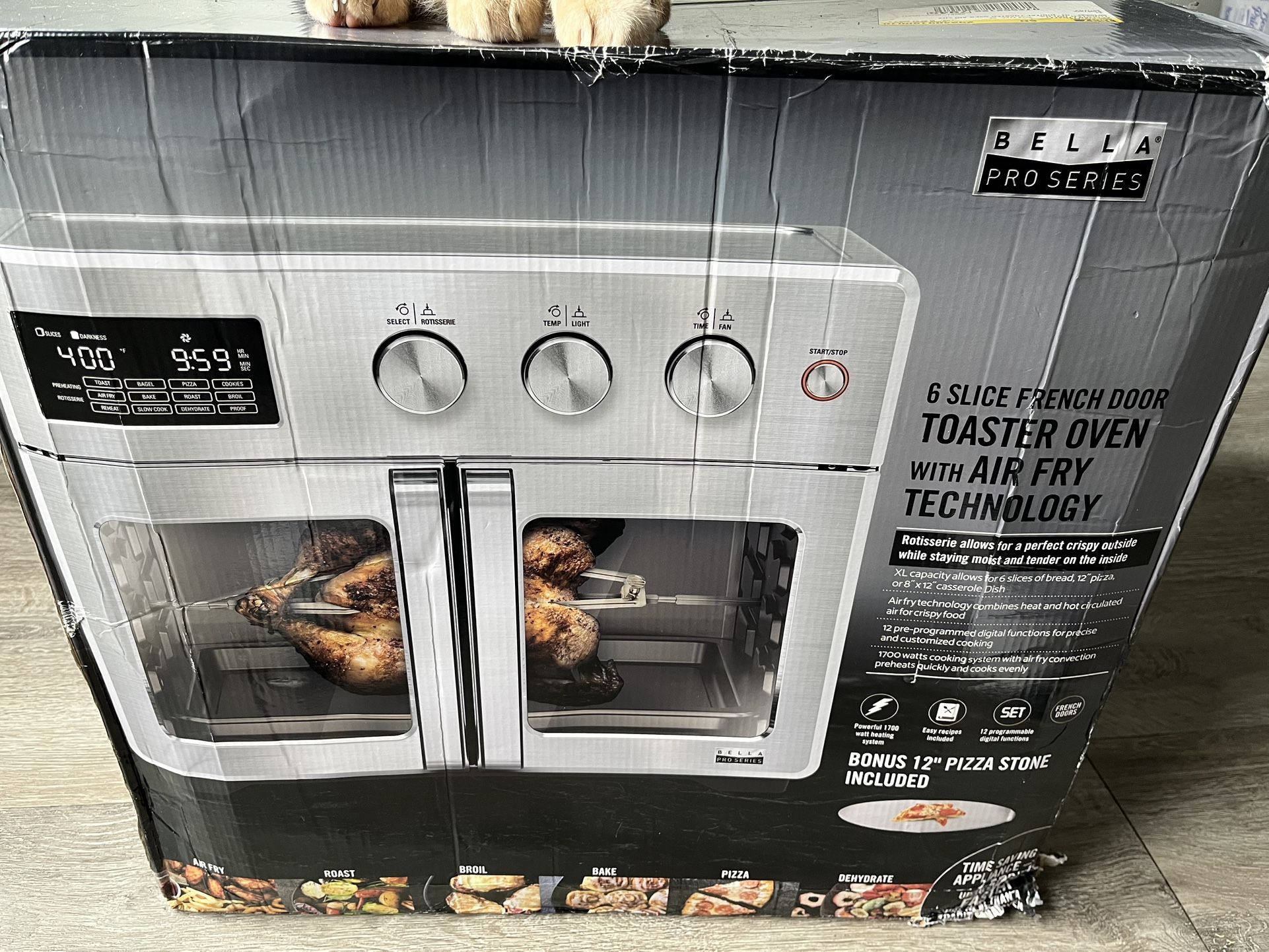 UNOPENED. 180 OBO bella PRO - 12-in-1 6-Slice Toaster Oven + 33-qt. Air Fryer with French Doors - Stainless Steel Don’t need just taking up space