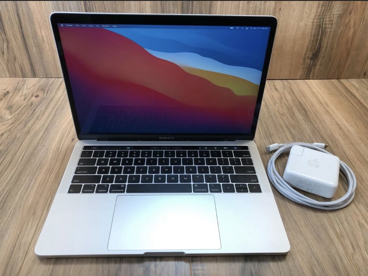 Comes with Apple charger. It’s in good condition and works just fine. The touchbar no longer illuminates backlight but is working when pressed. Mac info: ' 13.3” High-Res Retina Display ' 2.0Ghz Intel Quad-Core i5 Processor with turbo boost to 3.8Ghz ' 16Gb high Speed RAM ' 512GB High Speed SSD Storage ' Intel Iris Plus HD Graphics ' Built in WiFi and Bluetooth ' HD FaceTime cam + Mic ‘ Thunderbolt 3 USBc Ports Software: ' NEW Install of Mac OS ' LOGIC Pro X ' Microsoft Office suite with Word, Excel and PowerPoint ‘ Adobe Photoshop and Adobe Lightroom