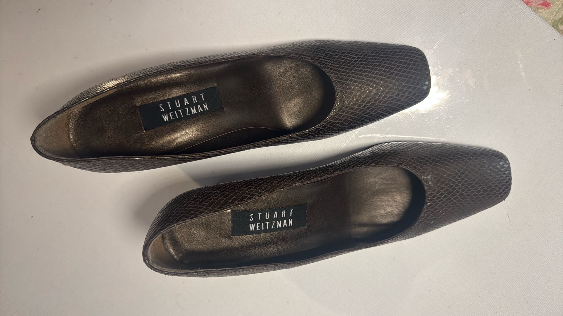 Stuart Weitzman Pump Heels Shoes Womens Size 10 Bronze Leather Snake Embossed were worn only one time they’re like brand new no smells rips or tears