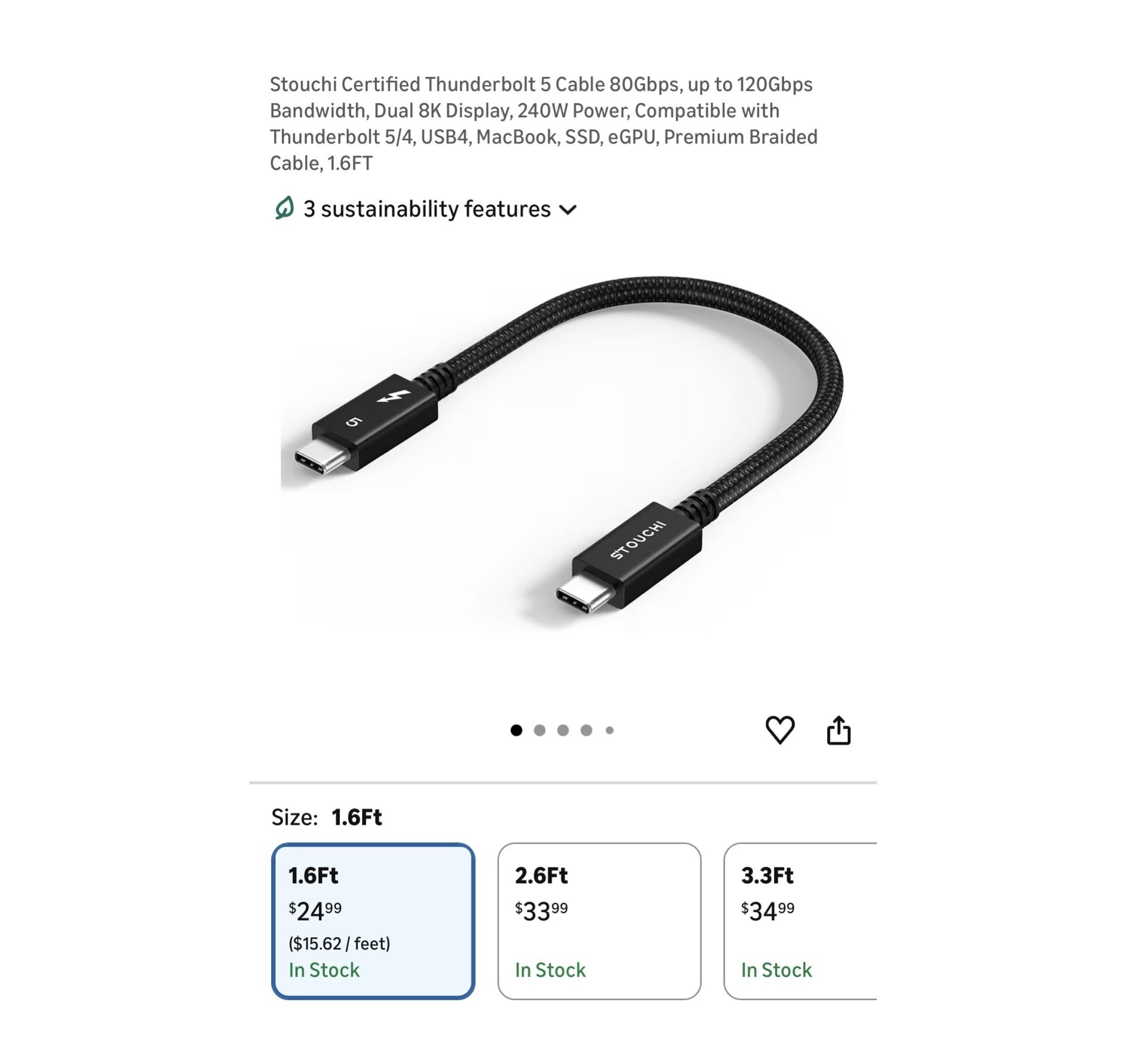 Brand new Certified Thunderbolt 5 Cable 80Gbps, up to 120Gbps Bandwidth, Dual 8K Display, 240W Power, Compatible with Thunderbolt 5/4, USB4, MacBook, SSD, eGPU, Premium Braided Cable, 1.6FT Whitestone/Flushing, Queens or Downtown Manhattan pickup Cash only