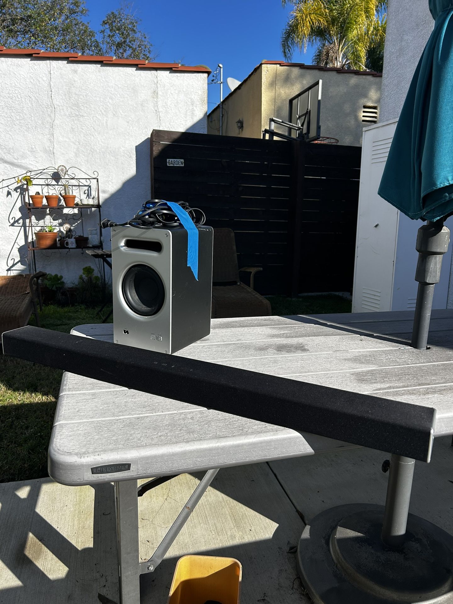 soundbar w/ a subwoofer. bluetooth connectivity. very minimal usage.