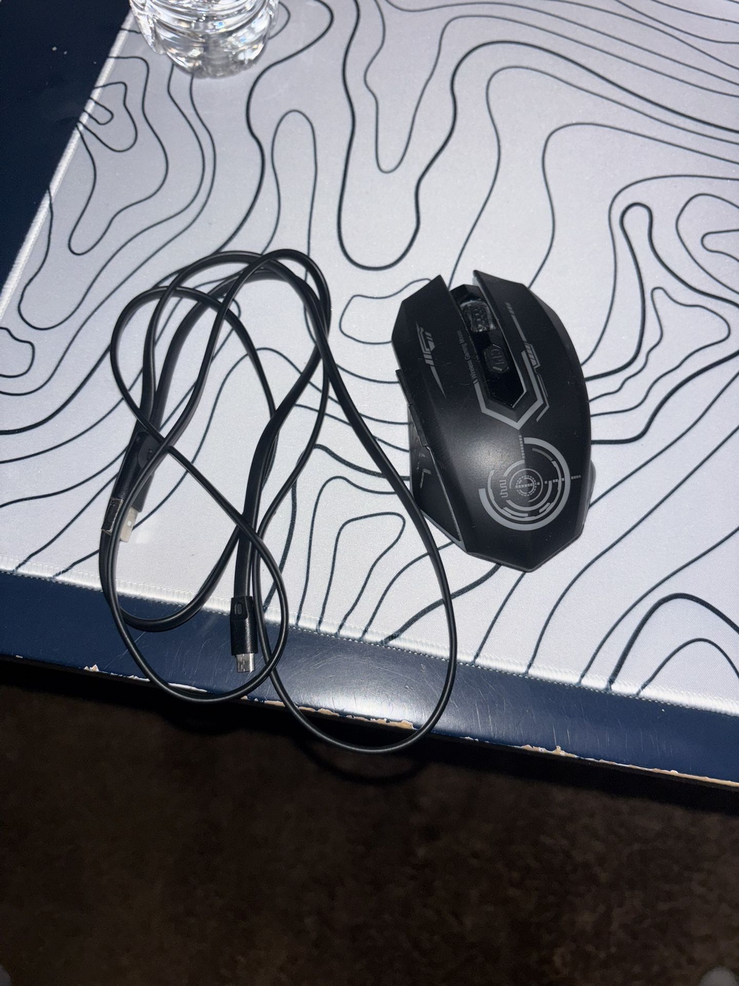 A very good, used gaming mouse, with side buttons and cpi changer that has LED lights. Comes with charger