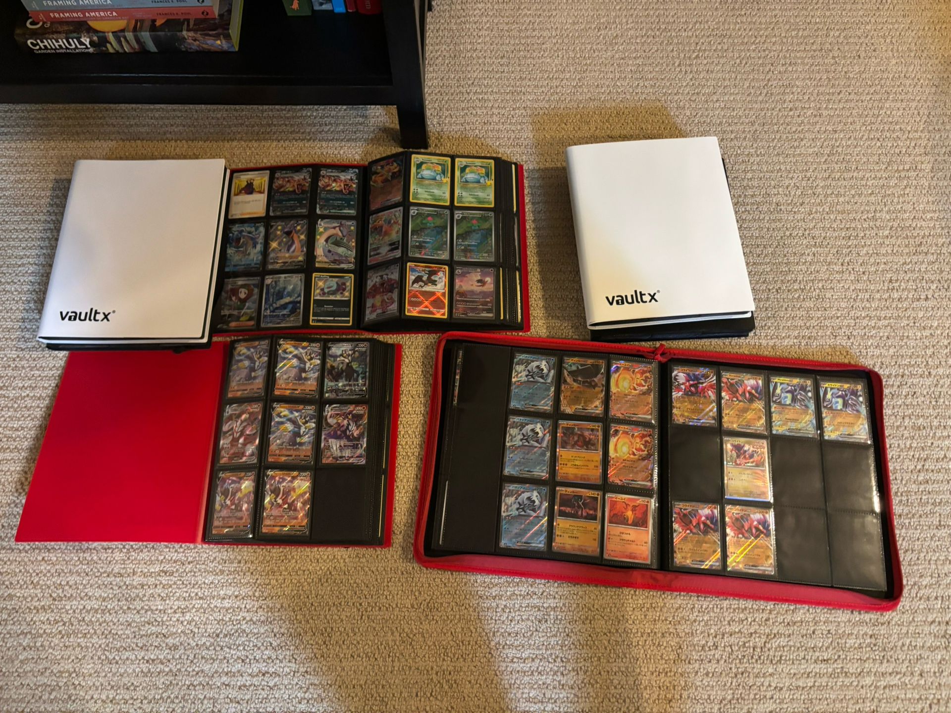 7 Binders which include a living dex of cards I was working on, a majority of the celebrations set, and a lot of the vmax climax set. This is my personal collection and includes many rare cards. It also includes my favorite common cards for almost every Pokemon. Most cards are in good, unplayed condition; largely sleeved or placed in binder immediately. A few cards from bw and xy era are slightly scratched. 1000s of cards. I am currently valuing every rare or higher card and the price may change depending on my research. Includes binders and whatever sleeves are on. Looking to sell in full.