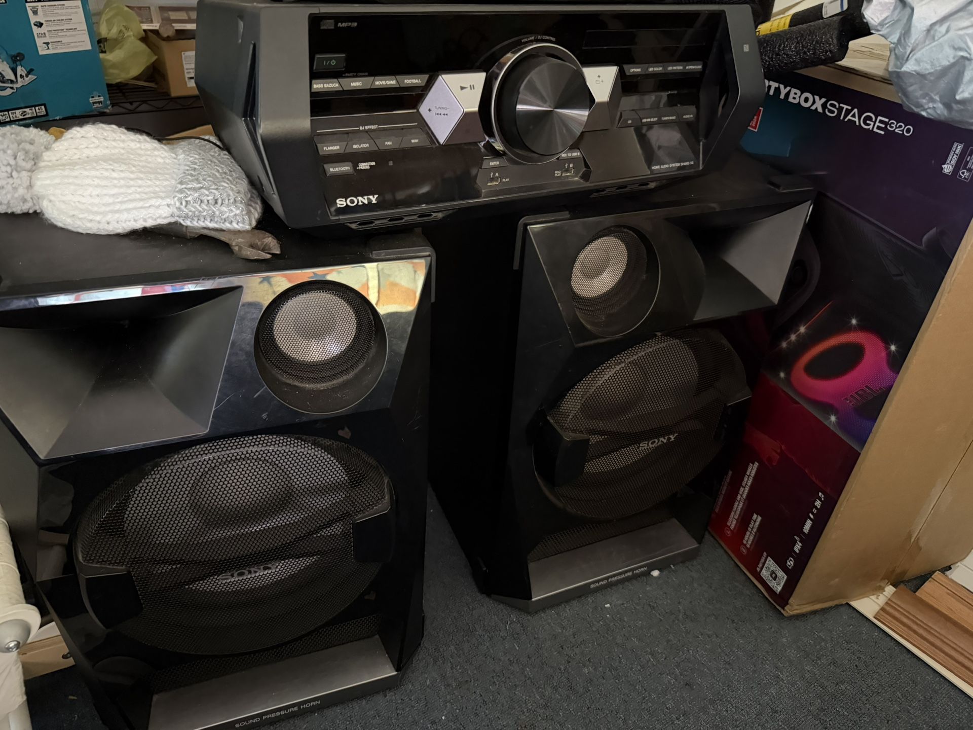 Great condition Sony shake hi fidelity audio system. 12 inch woofer, super powerful and loud. I purchased a jbl speaker and don’t need the system anymore. Se habla español. Let me know if you have any questions