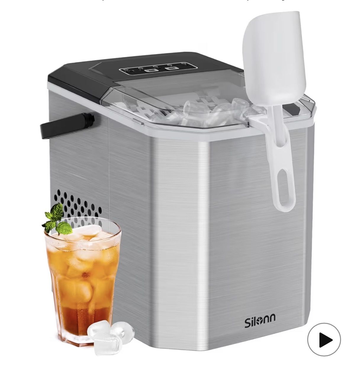 Like new Don’t have space for it anymore Works great Silonn Ice Maker Countertop, Stainless Steel Portable Ice Machine with Carry Handle, Self-Cleaning Ice Makers with Basket and Scoop, 9 Cubes in 6 Mins, 26 lbs per Day