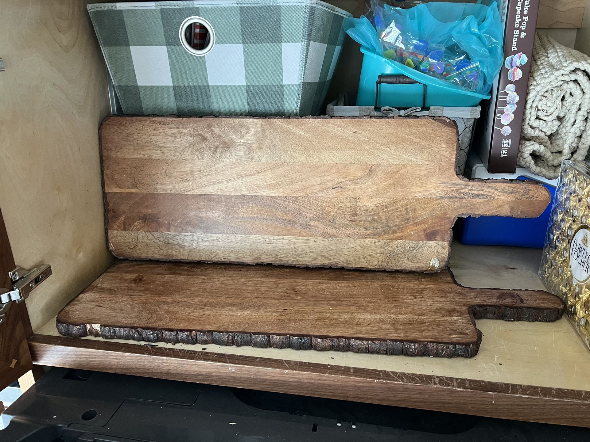 2 charcuterie boards which are about 24 inches long from end to end