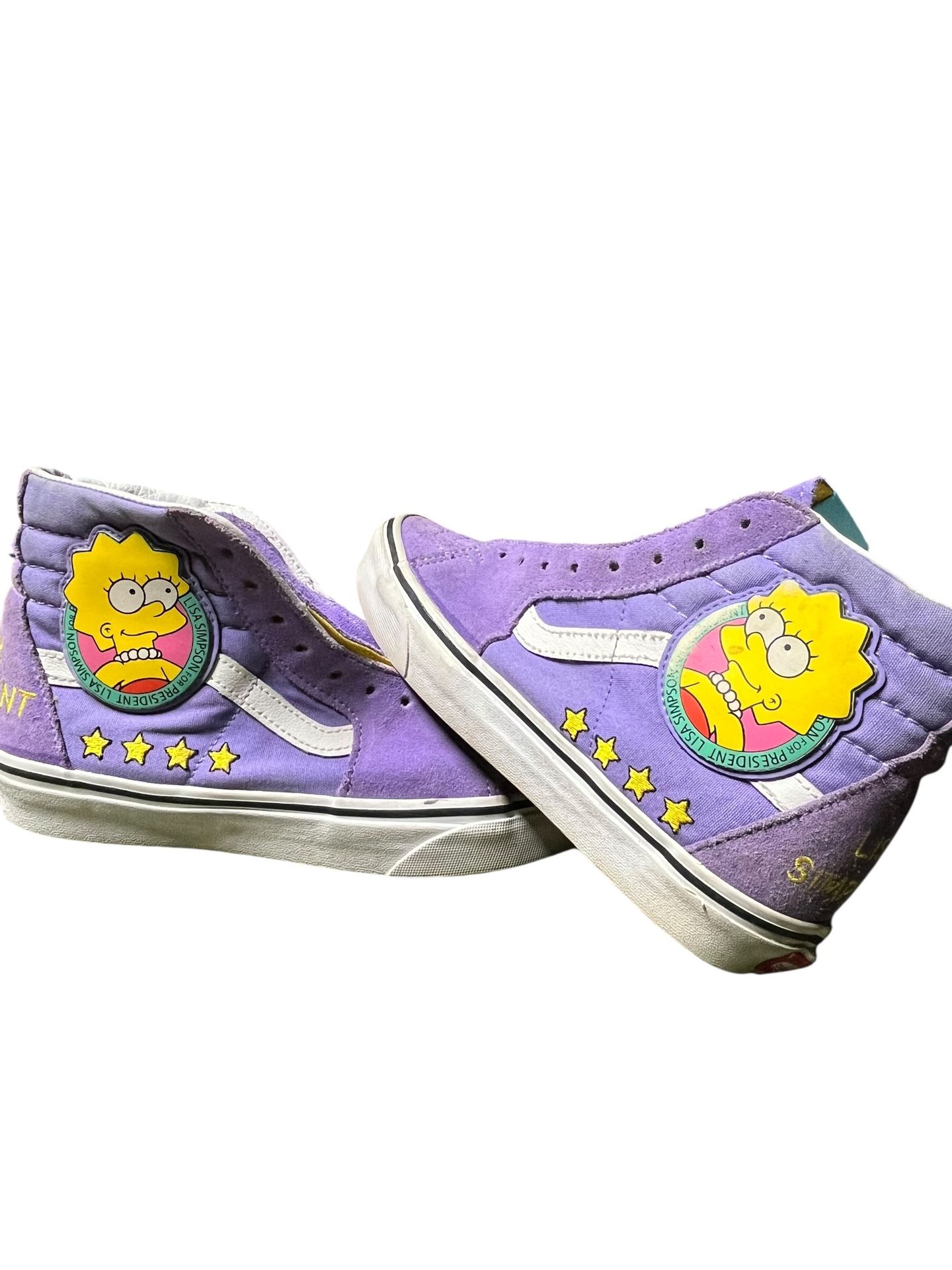 Size: Men 5.5 / Women 7 Price: $35 ($30 Cash for local pickup) Authentic Vans x The Simpsons collaboration. Purple suede/canvas high tops with Lisa Simpson graphics and gum soles. Condition: Pre-owned Good. Note slight fading on the character graphic and light dirt on soles. This item is being sold as is; please review all pictures carefully. Open to offers! I ship same day on orders purchased before 2:30 PM. If not, they will be shipped within 1-2 days maximum. Smoke-free home.
