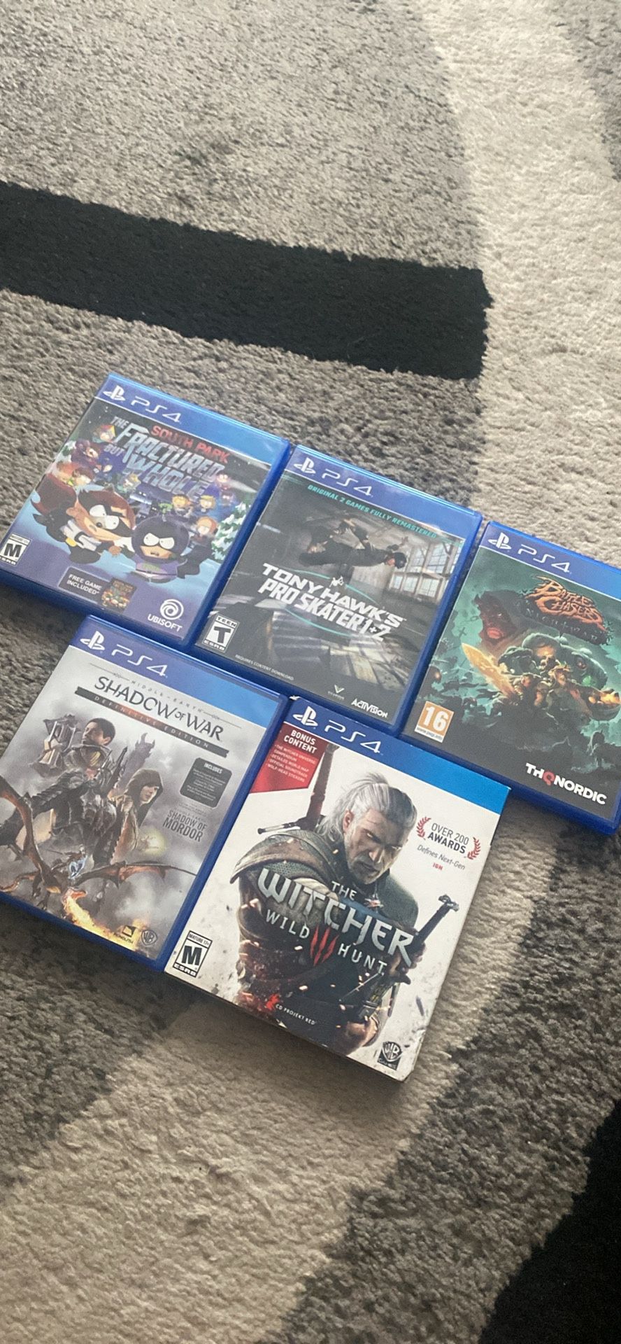 South Park Fractured But Whole — 16 Tony Hawk Pro Skater 1+2 — 16 The Witcher 3 Bonus Content Edition — 15 Middle-earth Shadow of War — 14 Battle Chasers Nightwar — 12 Total = 75