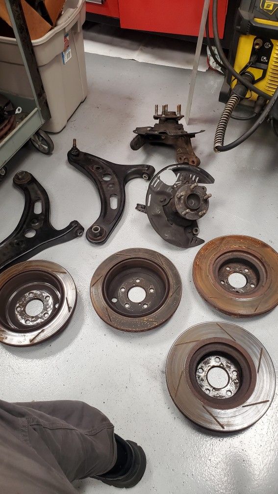 Selling some parts off the car that I converted to a racecar. Most interior pieces except the ones around the front dash are available. Please see pics Front Lower Control Arms - 80 Rotors - 100 for all All interior plastics - 100 Stock gps radio - 80 Front knuckles with hubs- 40 each