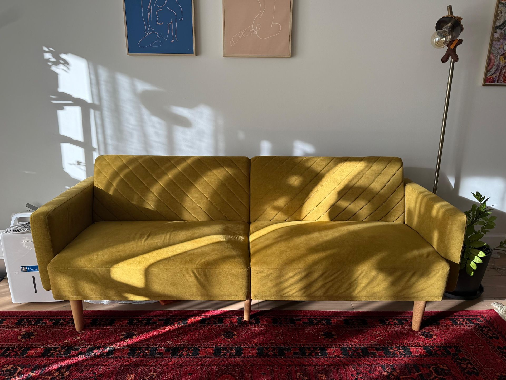 Velvet olive futon 77” In great condition! Such a fun color