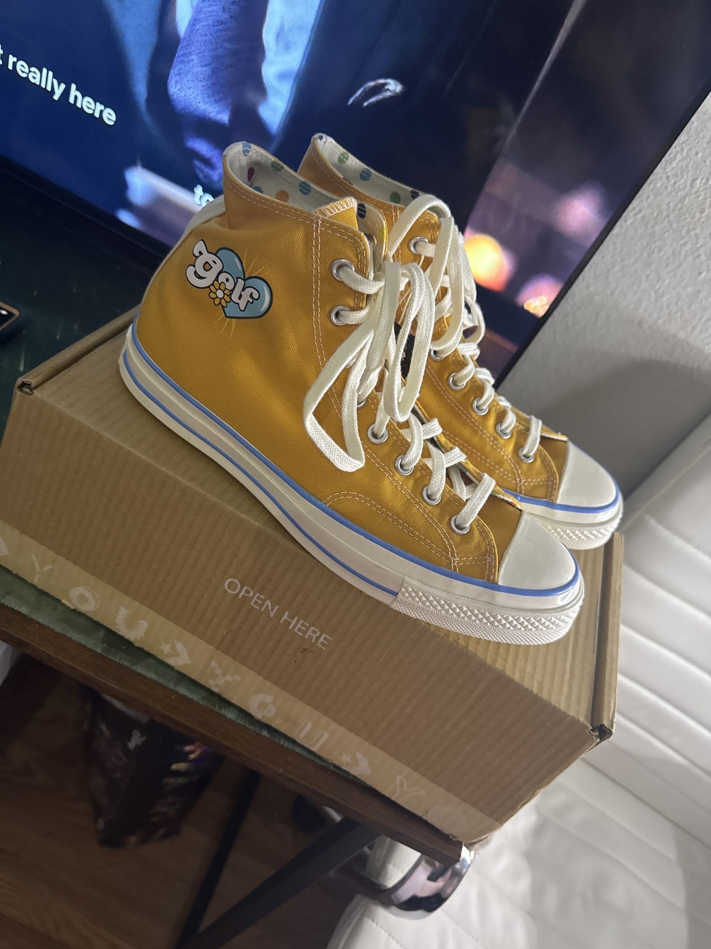 Custome converse chucks 70 Hightop collab from golf wang Only tried on once and never worn outside or walked in, SIZE 10