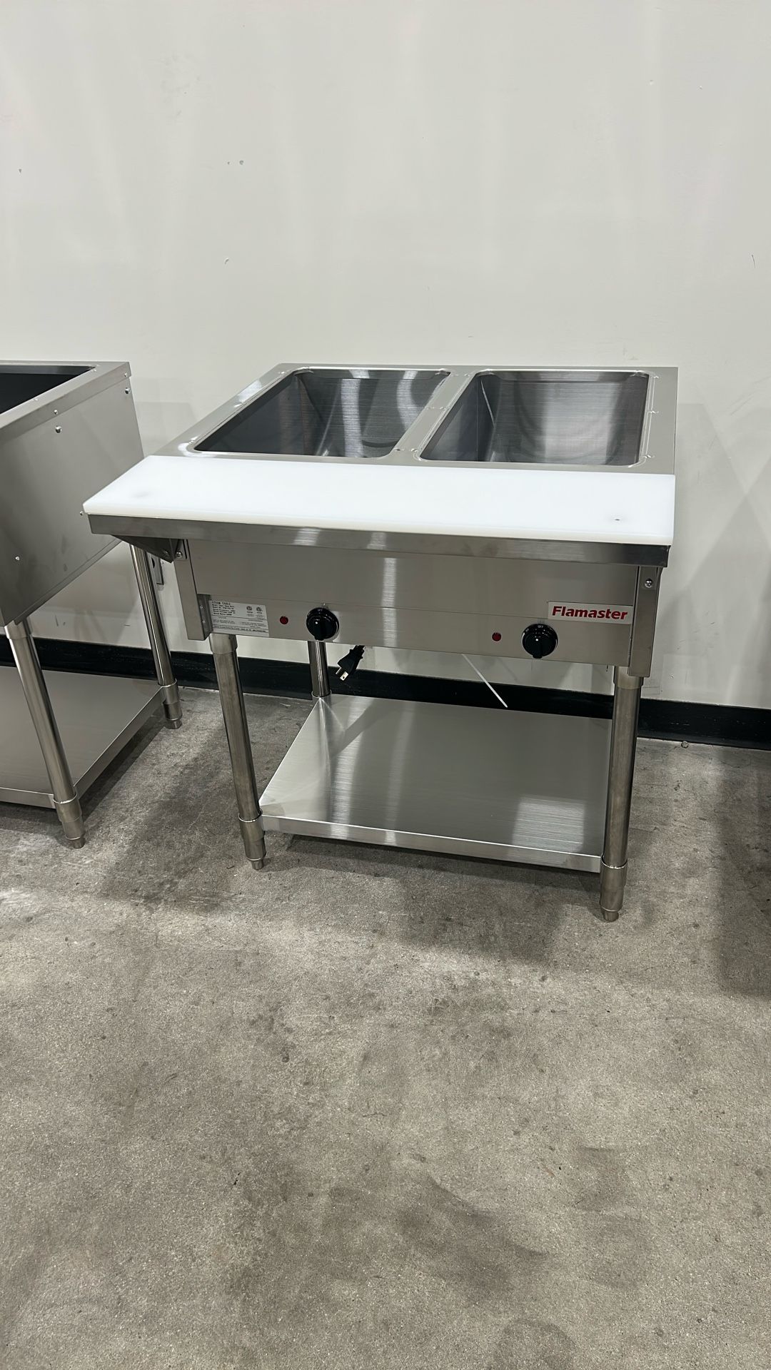Flamaster FLM-ST2-SS Two Pan Open Well Electric Steam Table with Undershelf - 120V, 1000W