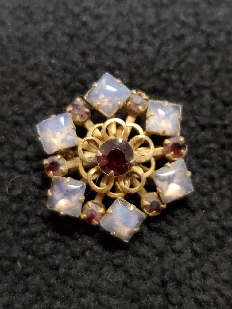 Vintage Goldtone Purple Rhinestones And Moonstone Brooch