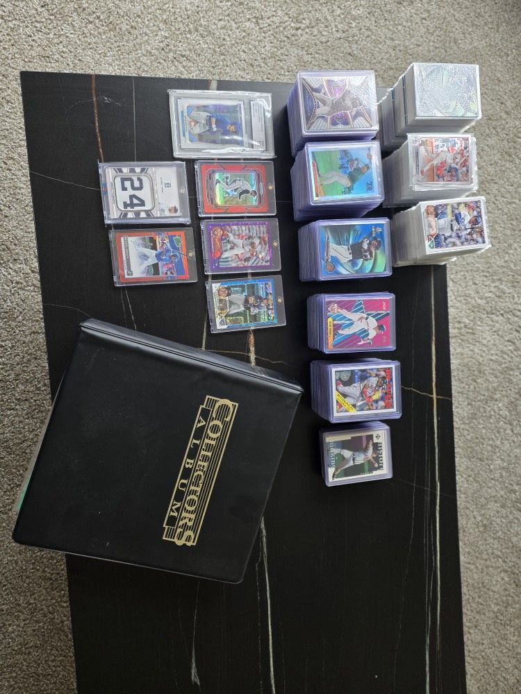 Over 250 cards in hard cases and hundreds more in penny sleeves. Numbered cards, patches and rookies. All cards have been sleeved since opening. Binder has over 70 pages of older vintage 80/90's cards with a ton of legends.