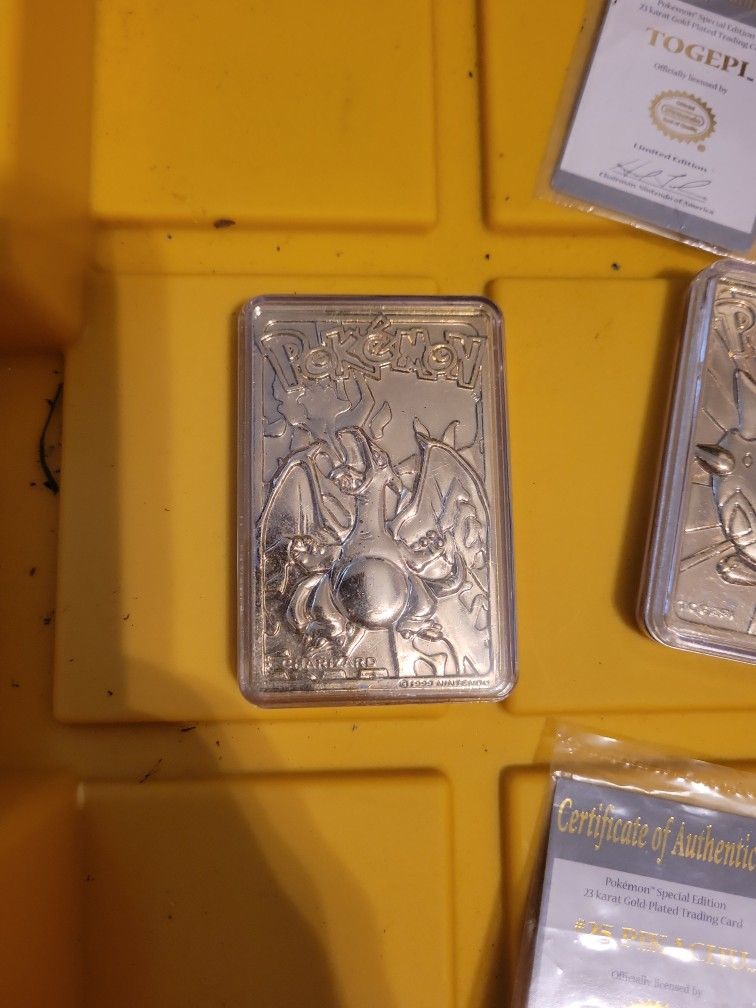 Everything in the picture is all I have 5 gold plated cards one pokeball