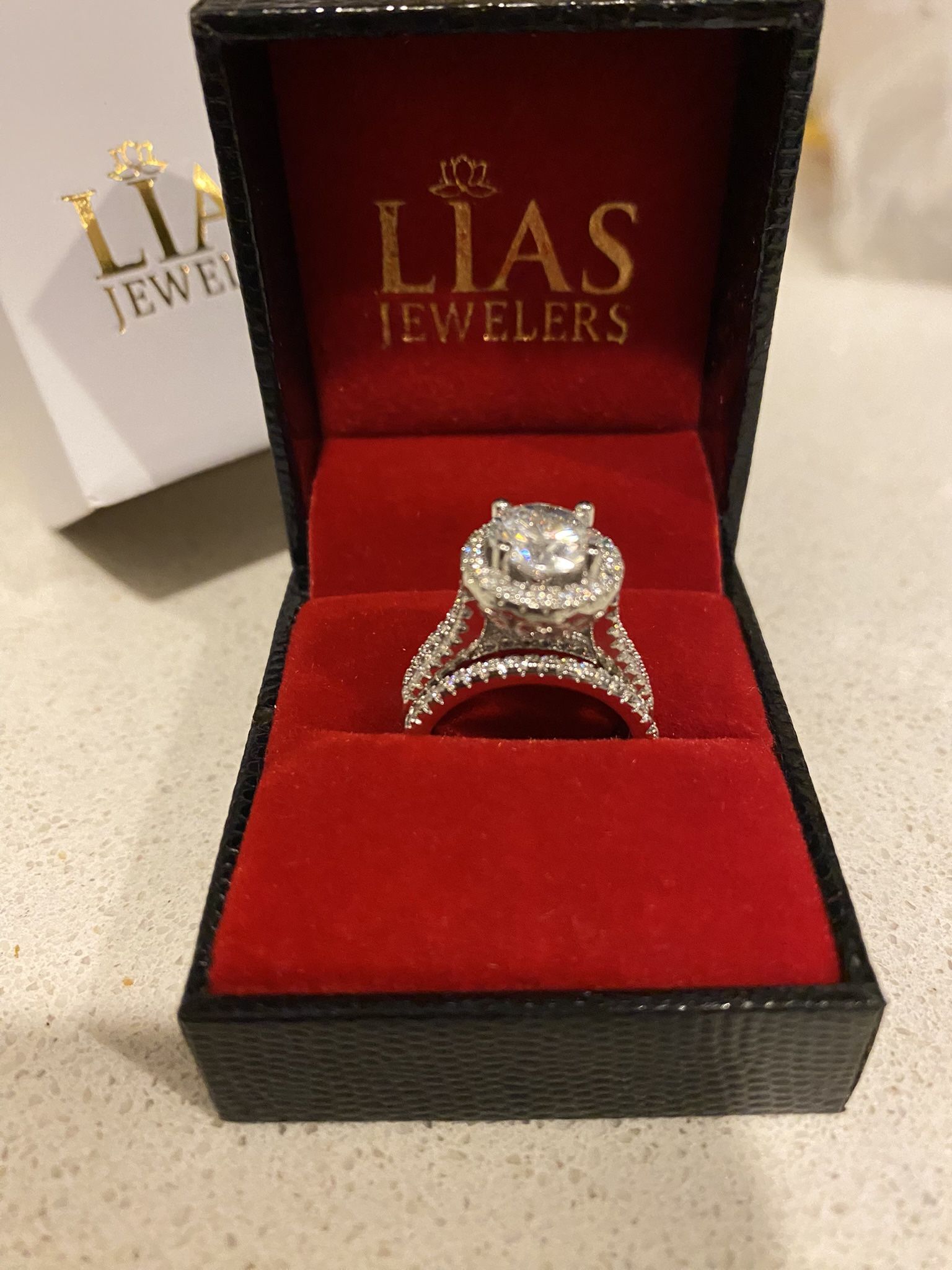 Brand new 18 k white gold filled with lab created diamonds wedding ring set, engagement ring. Available in most sizes! Also have men’s wedding ring, men’s wedding band, bridal set, engagement ring , wedding ring set