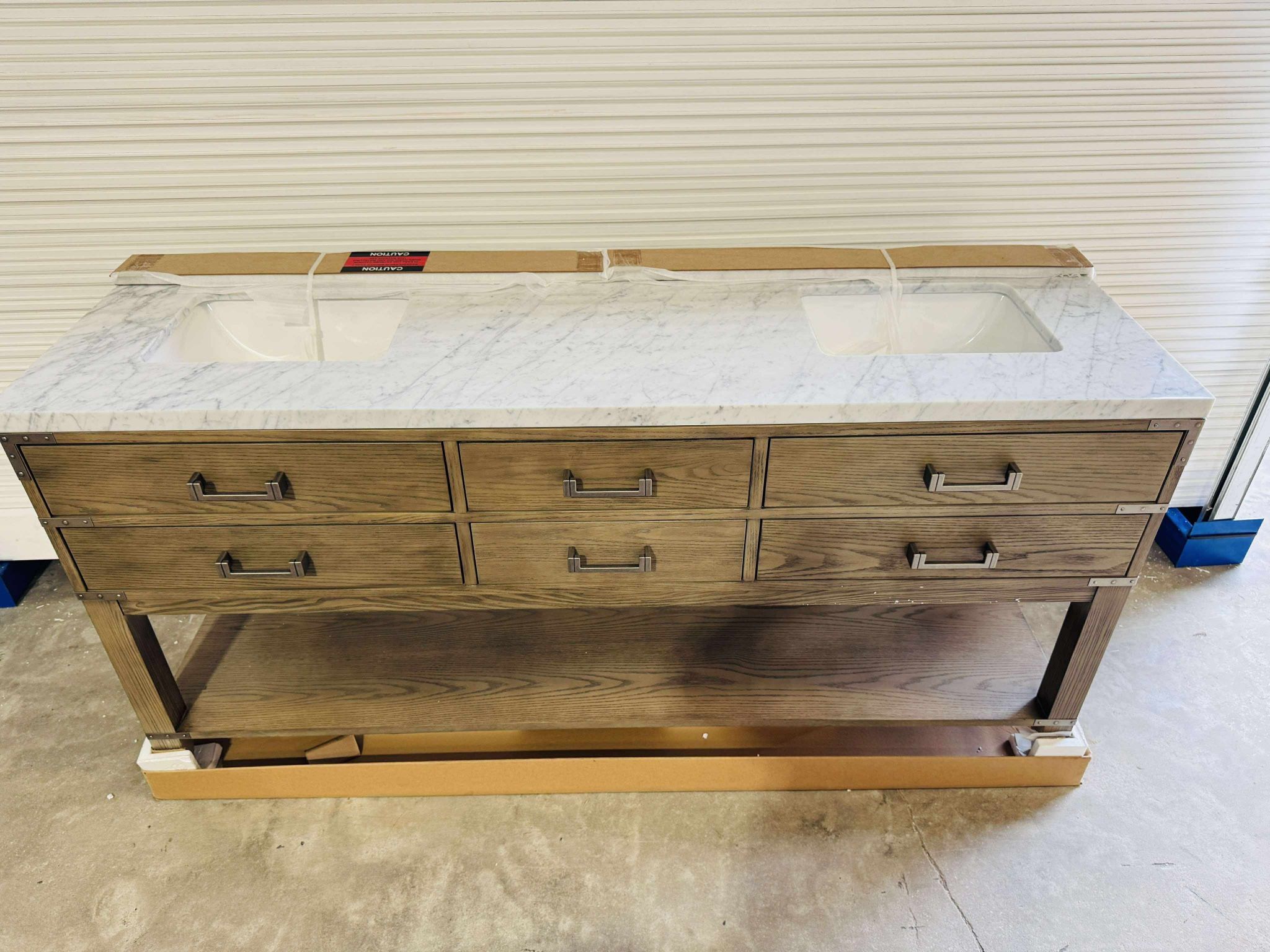 72 in W x 22 in D Grey Oak Double Bath Vanity and Carrara Top $999