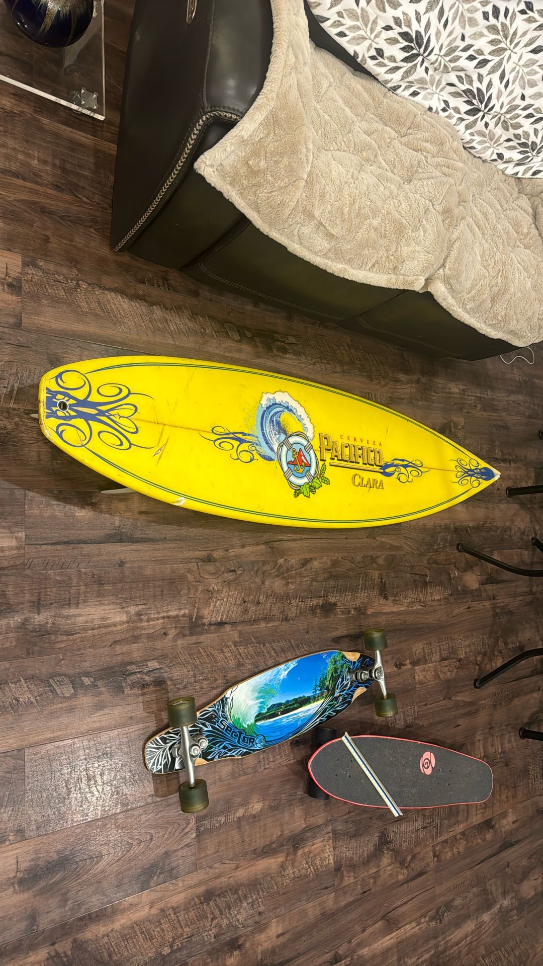 One of a kind Pacifico surfboard Has a few dings probably wouldn’t surf with it but it’s still pretty awesome for a man/woman cave