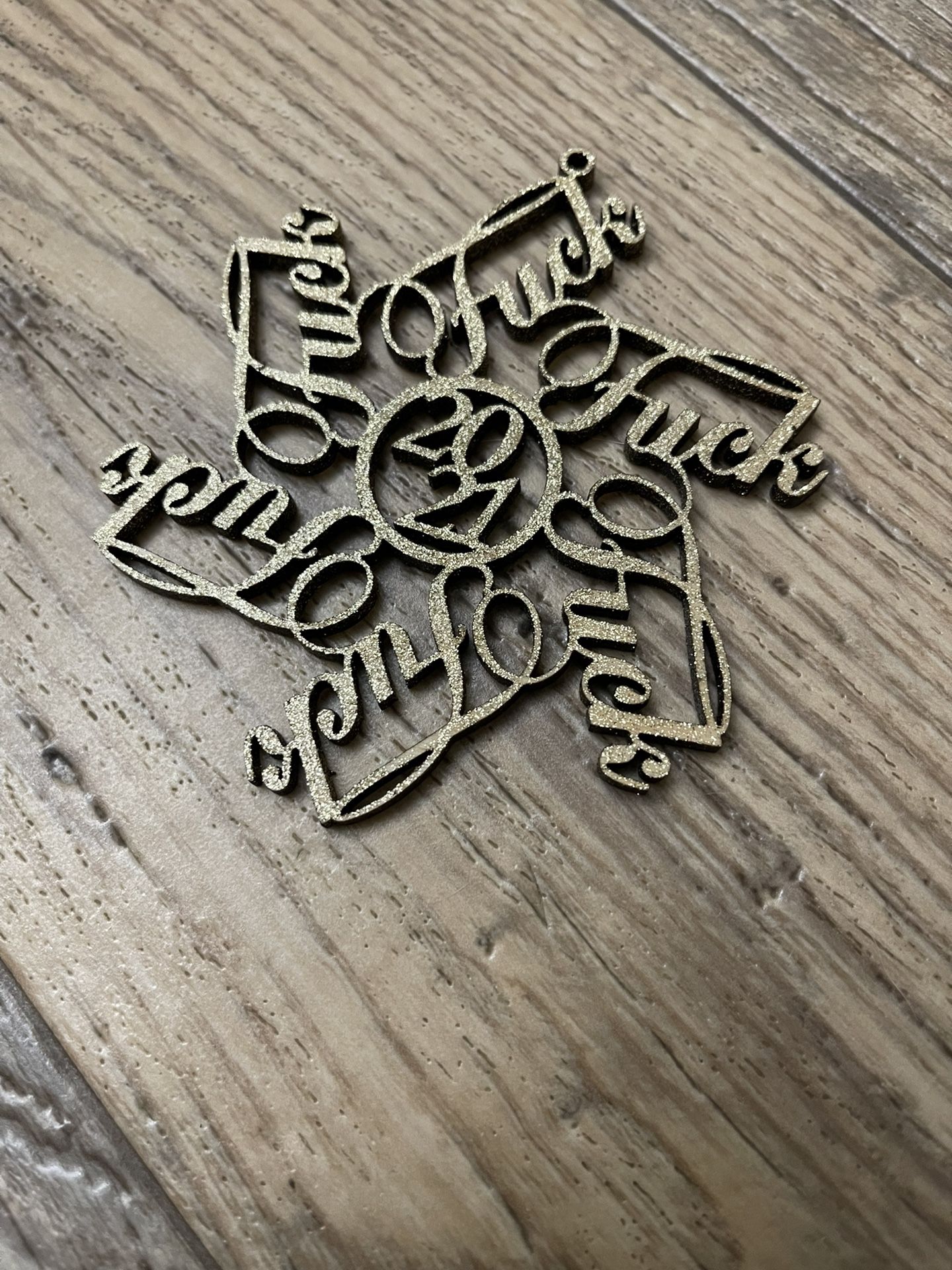 This is a snow flake fuck flake custom made ornament Size 4x4 Made from 1/8 birch wood Let me know if you want more than 1