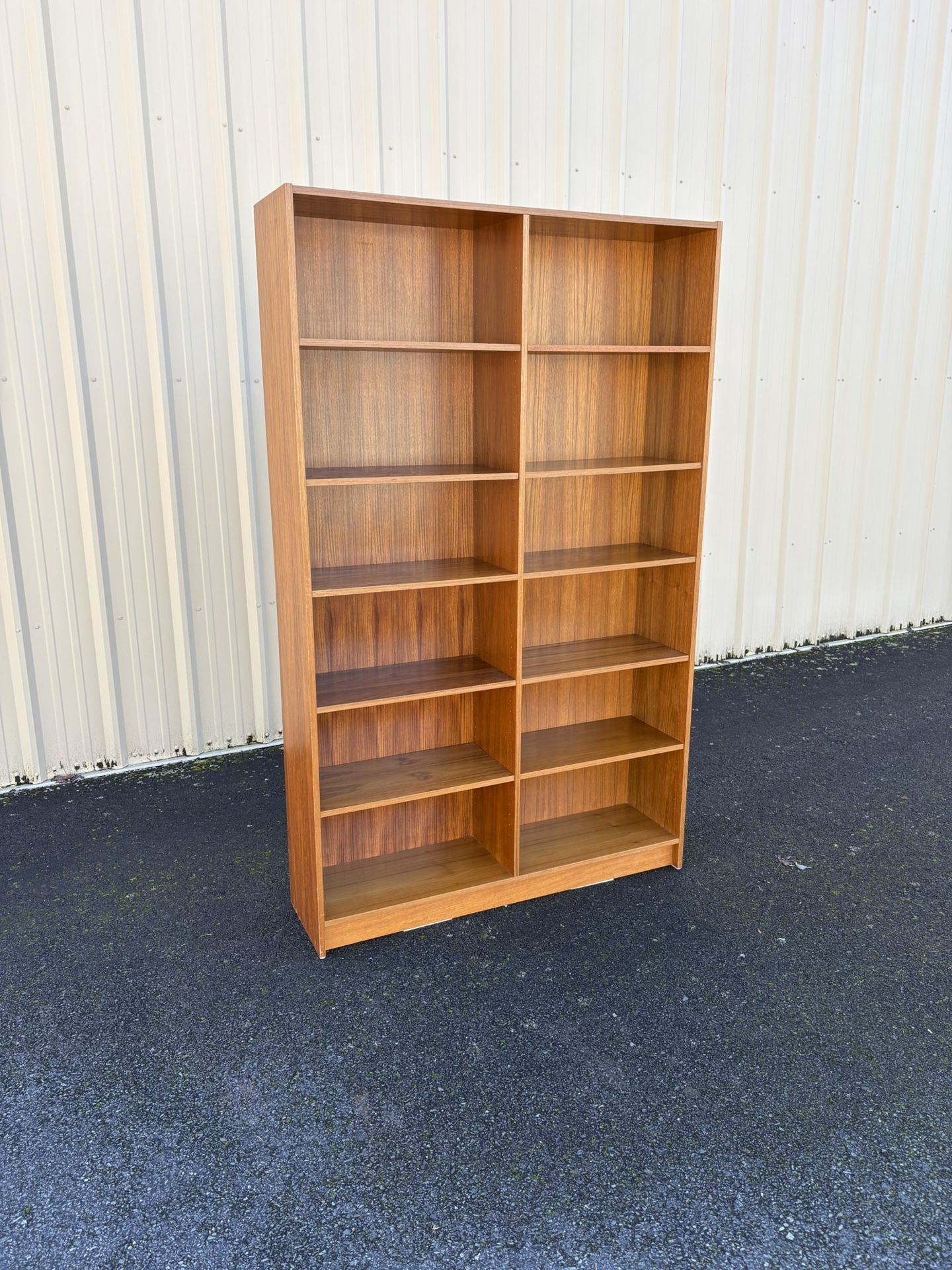 Mcm Danish teak wide bookshelf Made in Denmark -shelf is in good condition overall but has wear and tear, there are multiple small chips that have been filled along the bottom edge which is very common on these pieces unfortunately. Some scratches and scuffs from typical use as well, please view the images. -sturdy piece with multiple adjustable shelf heights to accommodate your pieces Check out page for more mcm pieces! Located in lake Steven’s can deliver for a fee Dimensions: H:76 3/8” W:47 1/4” D:12 3/8” Antique Vintage Scandinavian